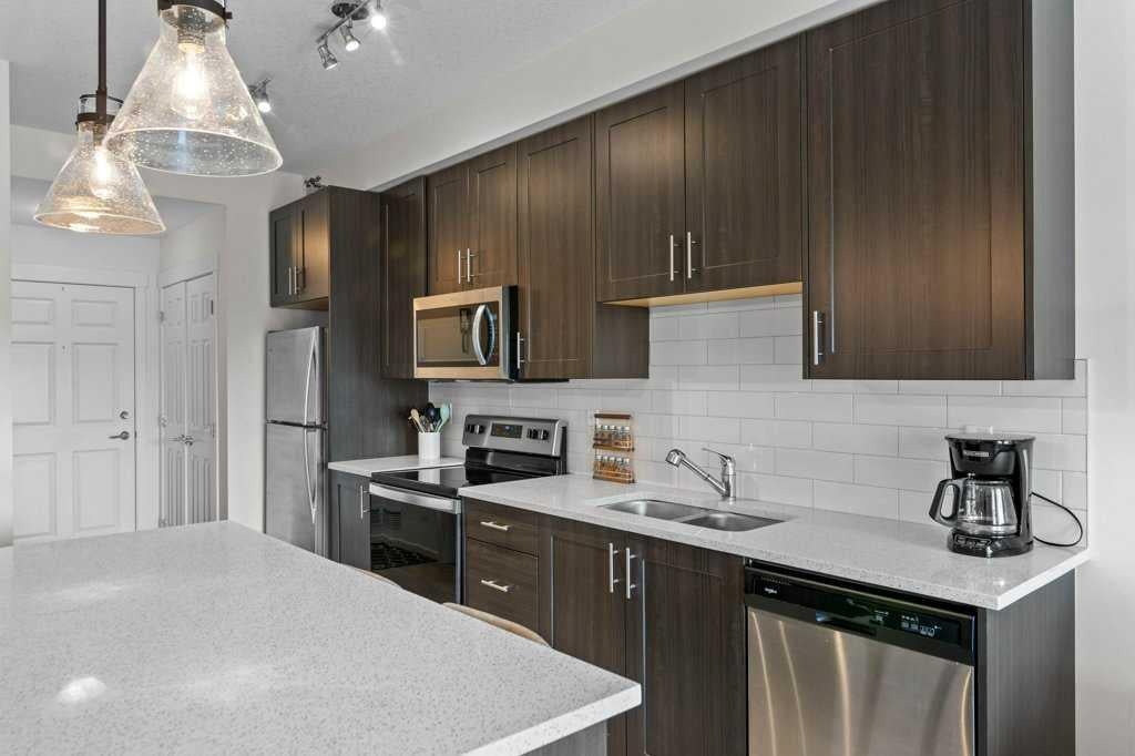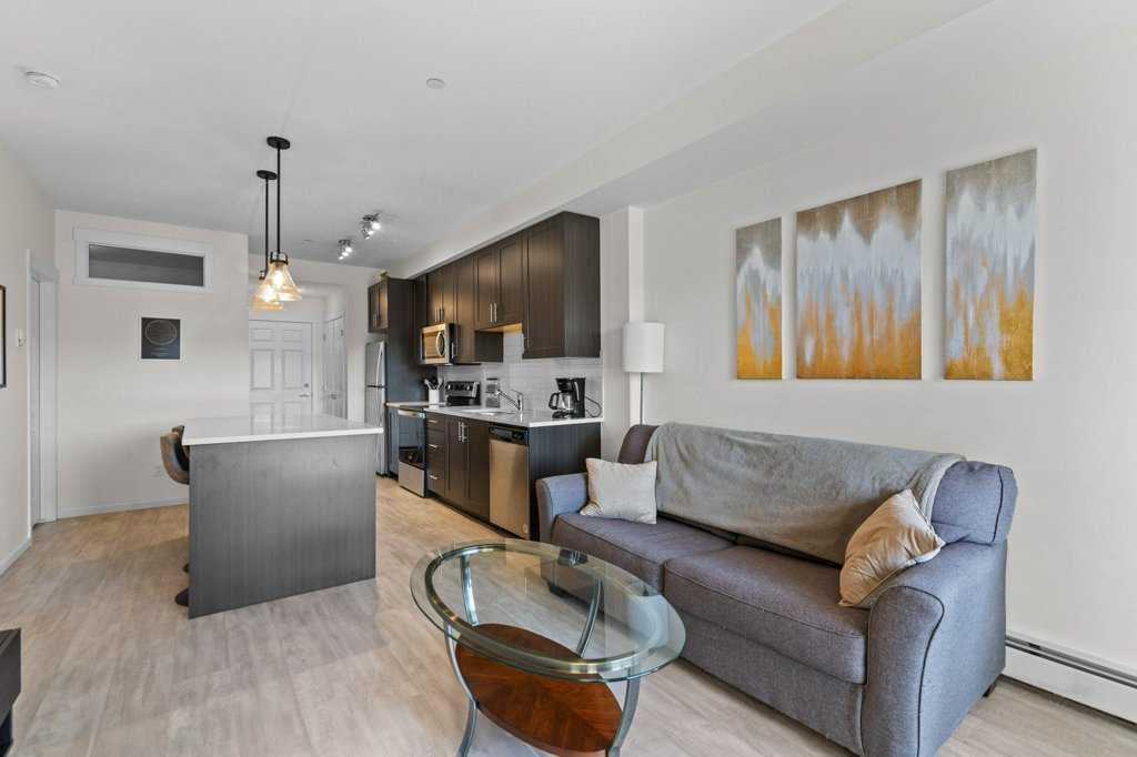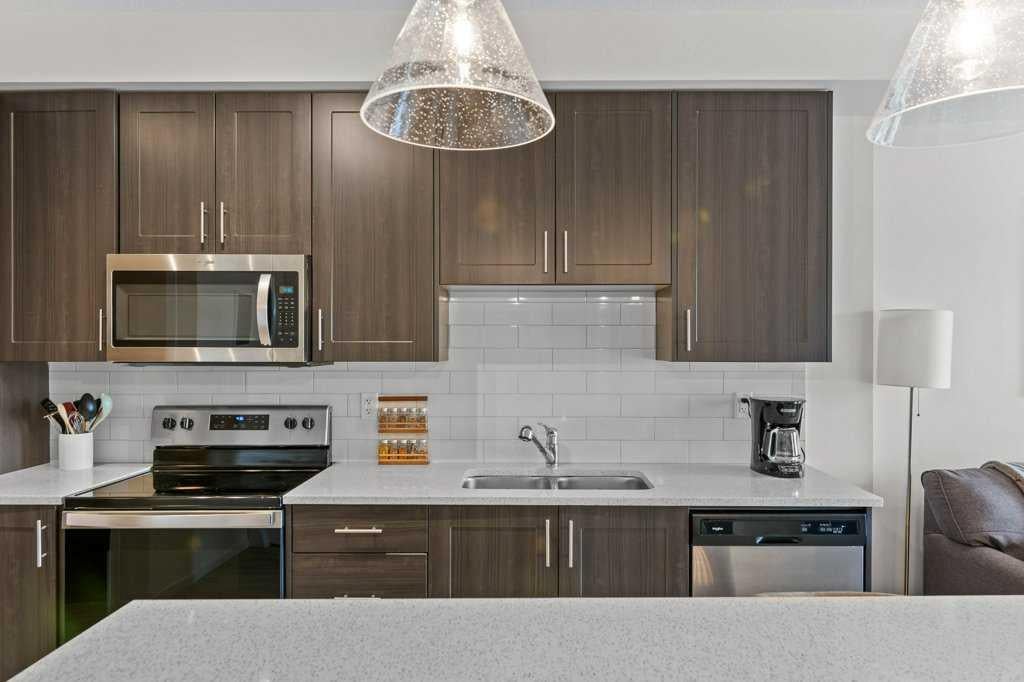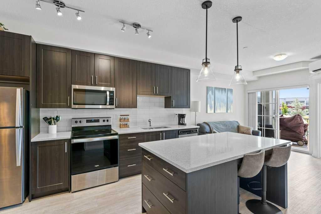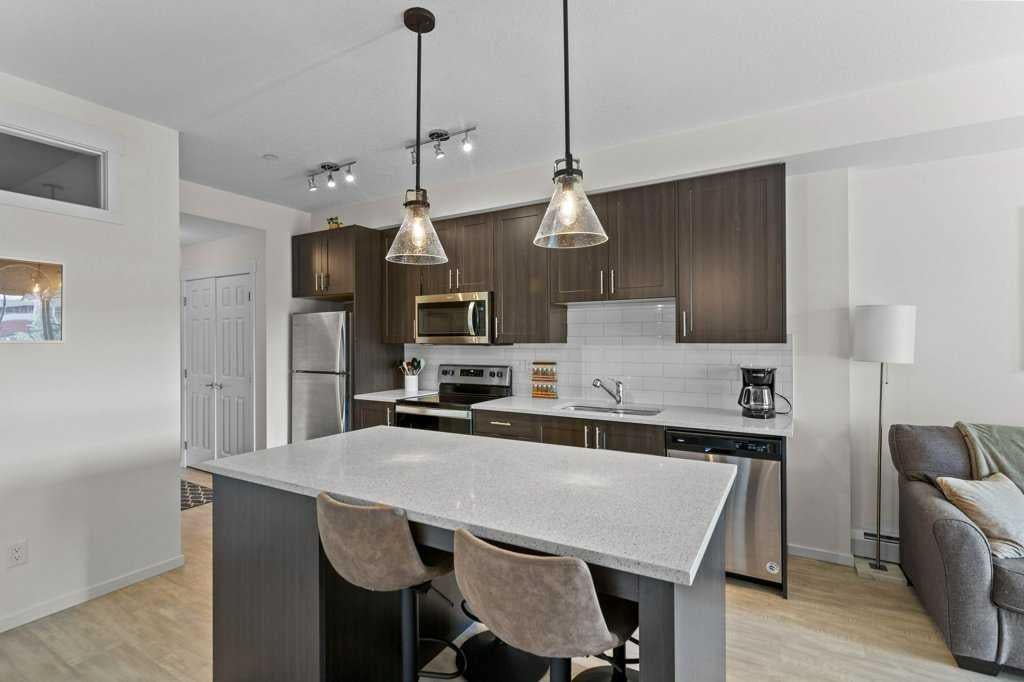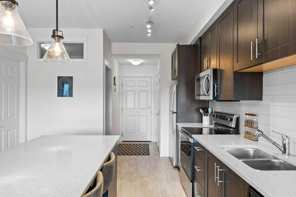 Welcome to Legacy, one of Calgary’s most sought-after communities! This pet friendly, air-conditioned 2 bedroom, 1 bathroom condo offers stylish upgrades and low maintenance living, ideal for first-time buyers or downsizers. Inside, you’ll find luxury vinyl plank flooring throughout, an open concept kitchen with quartz countertops, stainless steel appliances, smart cabinetry, and an oversized island with seating, perfect for cooking and entertaining. The primary bedroom features a walk-through closet with direct access to the bathroom, while the versatile second bedroom is ideal for guests, a home office, or a workout space. Enjoy your private west facing patio with a natural gas line for BBQs, plus the convenience of in-suite laundry, a titled underground parking stall, and a secure storage locker. Walk to shops, restaurants, parks, schools, and fitness facilities, with quick access to major roadways for easy commuting. This move-in ready home is the perfect blend of comfort, style, and location, book your showing today!