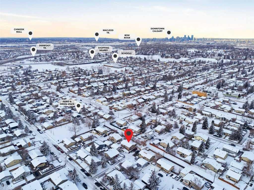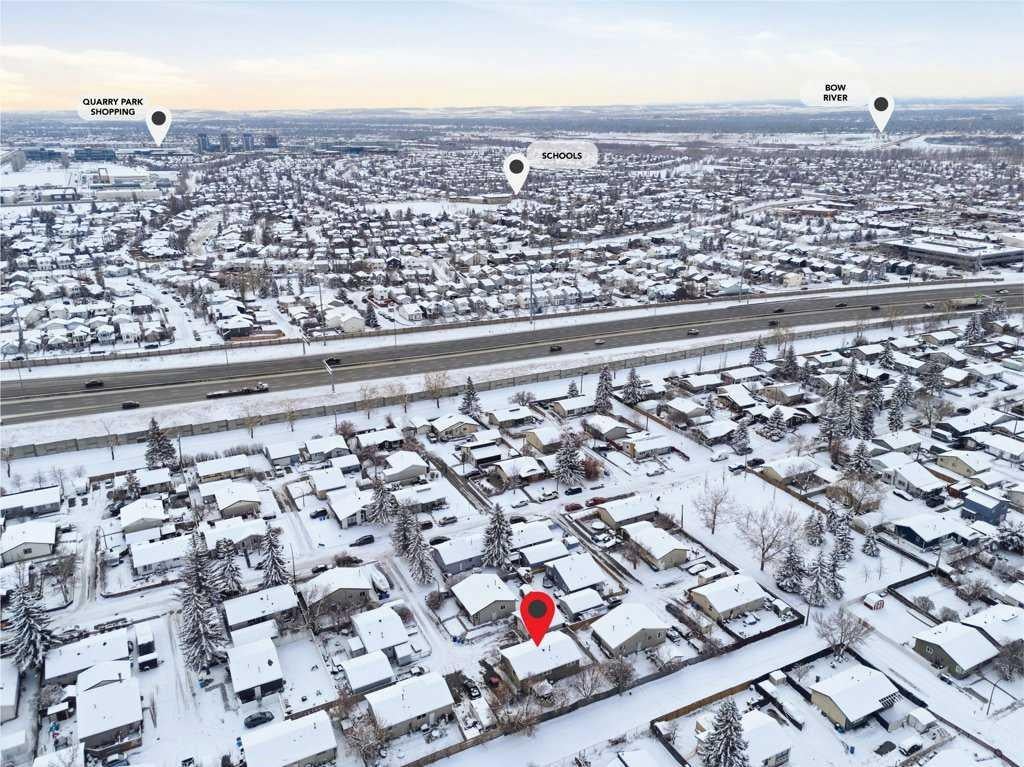 Welcome to this well-maintained and spacious bungalow, offering 3 bedrooms on the main level and fantastic updates throughout. Recent improvements include all new windows and doors, new roof shingles, and a new A/C unit, giving you peace of mind and year-round comfort. The main floor features easy care laminate flooring, a bright kitchen with newer appliances, and an inviting nook and great room—perfect for family living and entertaining. A 4 piece main bath completes the level. Sitting on a huge lot, this property boasts a fully fenced backyard with loads of space, plus a charming water feature/pond (yes, the fish are included!). There’s also parking for up to four vehicles, ideal for families, guests, or extra toys. The lower level is partially finished and ready for your creative vision, with plenty of room to develop a future rec space, bedroom, or additional bathroom. Laundry is located on the lower level. Set in a convenient location—close to schools, parks, and with quick access to Glenmore and Deerfoot Trail—this is a wonderful opportunity to own a solid family home with room to grow.