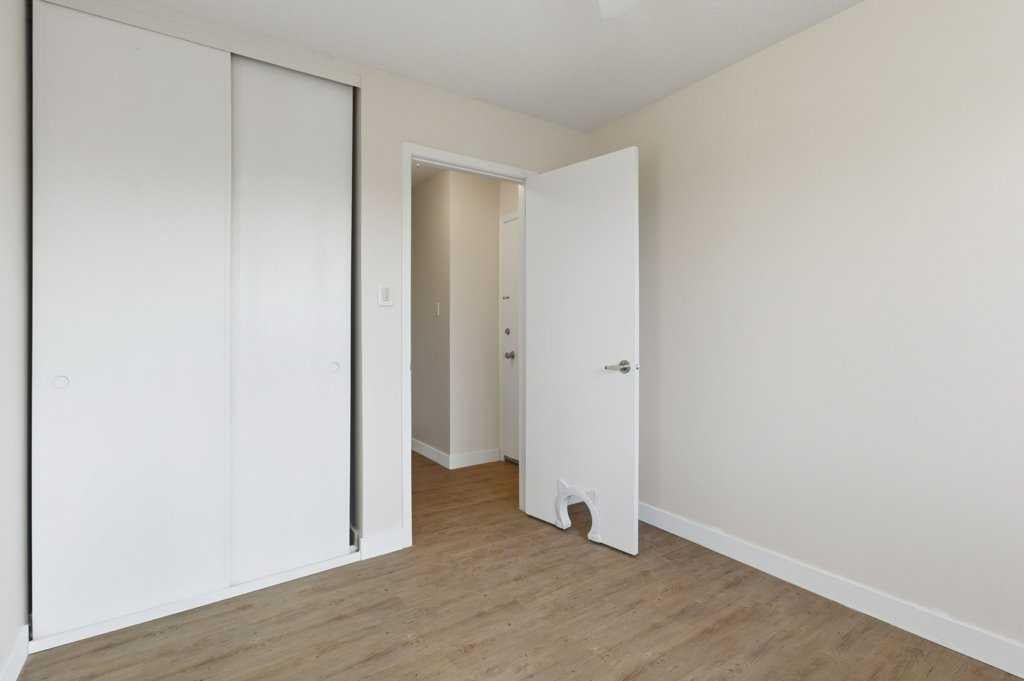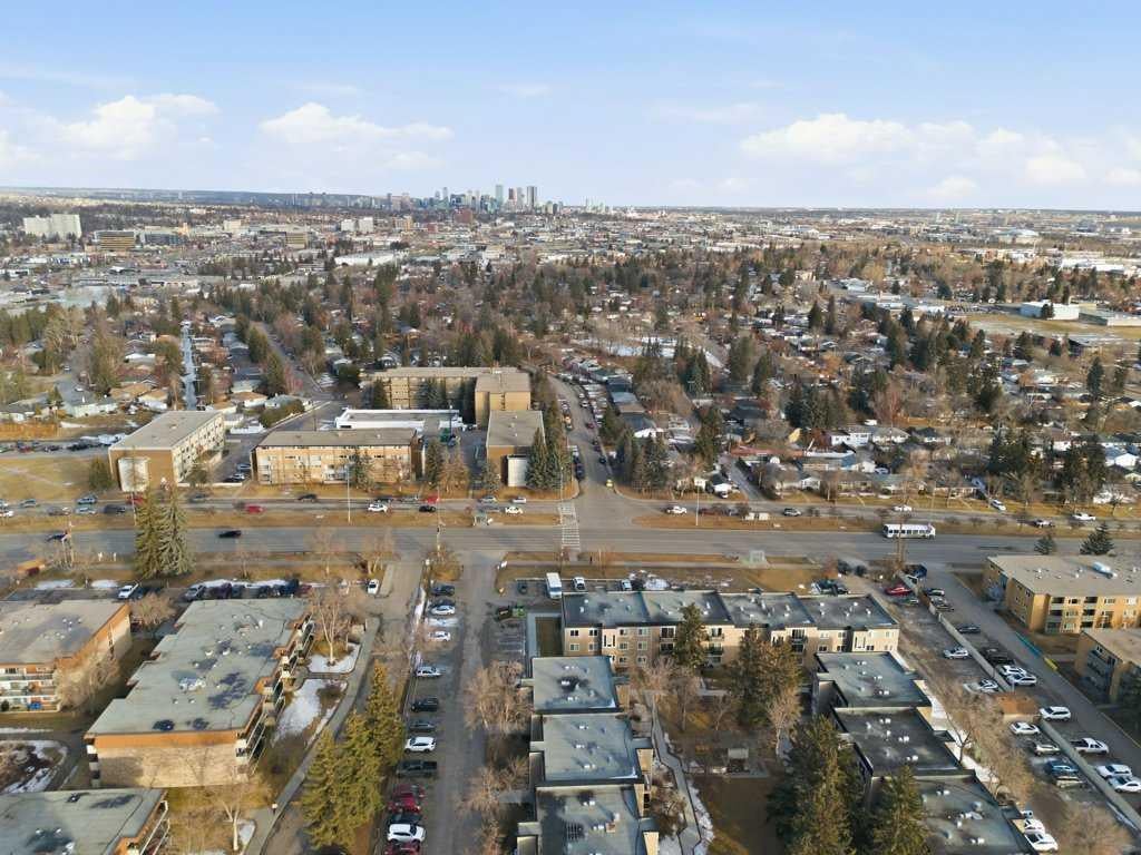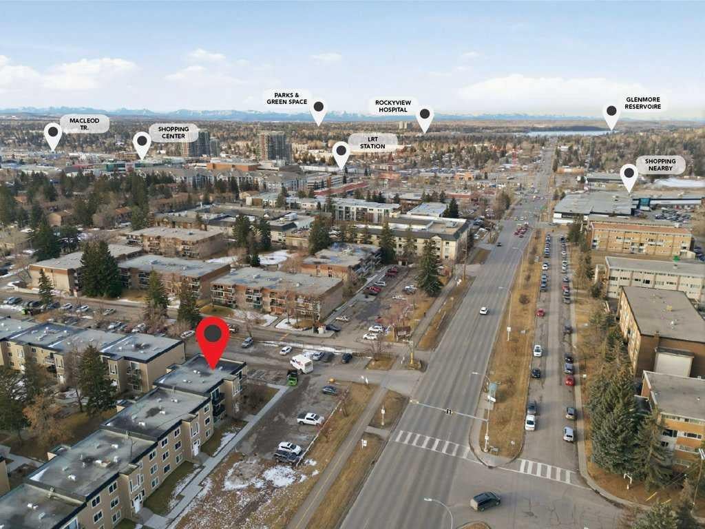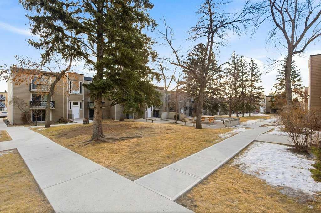 TOP FLOOR UNIT IN ACADIA offering approximately 869 sq. ft. of smartly designed living space with extensive renovations throughout. This two bedroom, one and a half bathroom condo delivers exceptional function, privacy, and flexibility—ideal for first-time buyers, downsizers, or investors. Step inside to discover easy care, water resistant laminate flooring throughout and a thoughtfully designed layout with generous room sizes and excellent storage. The professionally renovated kitchen features granite countertops, a modern tiled backsplash, stainless steel appliances, and custom built-in cabinetry that adds valuable extra storage with pull-out shelving. The spacious great room flows to a private balcony through sliding doors, while the well-sized dining nook easily accommodates a large table—perfect for entertaining. The updated 4-piece main bathroom showcases a modern tiled tub/shower surround and new vanity. A rare and desirable in-suite laundry room adds everyday convenience not found in all units. The primary bedroom offers a walk-in closet and private 2-piece ensuite, while the second bedroom is generously sized—ideal for guests, roommates, or a home office. This well-managed complex has seen substantial exterior upgrades, enhancing long-term value and curb appeal. In 2017, major improvements included a new roof, doors, Hardie Board siding, and common area updates. In 2020, all exterior walkways and entry areas were replaced with new concrete, providing a refreshed and well-maintained appearance. One assigned parking stall is included. Located in the established community of Acadia, this home offers outstanding access to local shops, services, schools, parks, and Heritage LRT Station. A true standout in a quiet, well-maintained complex, this move-in-ready unit showcases thoughtful upgrades, added functionality, and exceptional value.